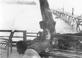 Hier nog een foto van Ankie, op de achtergrond de steiger.