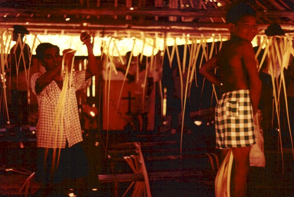 Versiering binnen in de kerk.