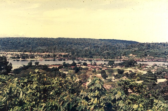 Vergezicht vanaf de residentswoning naar Pier Kuki en Sanggeng