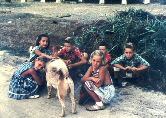 De kinderen op de voorgrond van de foto zijn: Annemarie de Knecht, hond en ikzelf (Marian Hendriks).