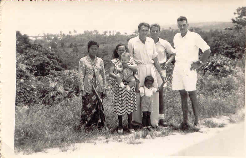 Van links naar rechts: Toeni, Annie met haar zoon Billy, Jan Elbertsen met Henny.