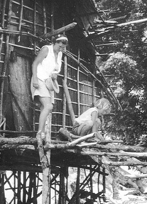 Mijn moeder en ik beklommen een onbewoonde woning in de bush.