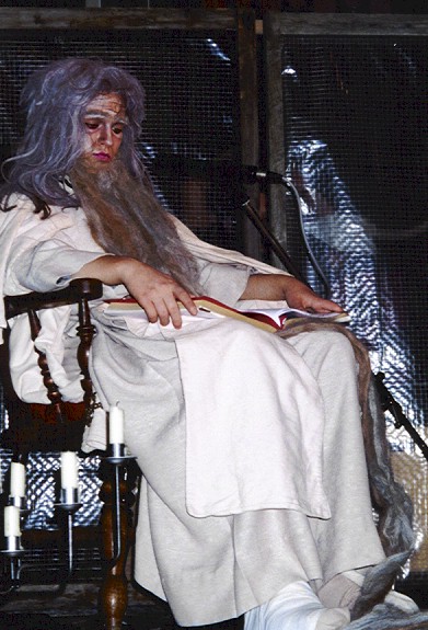 Hier speel ik toneel. Ik ben een oude wijze man.