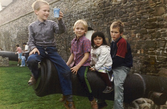 En hier zijn we alle vier, Michiel voorop, dan Frank, Suzanne en Erik.