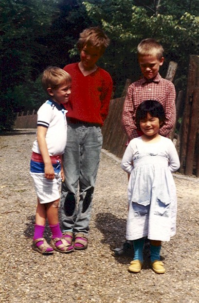 Hier zijn we weer met ons viertjes. Michiel kijkt wel een beetje sip.