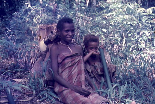 Onderweg op de trektocht komen we deze vrouw met kind tegen. In de groene bamboe draagt ze water met zich mee. terug volgende index