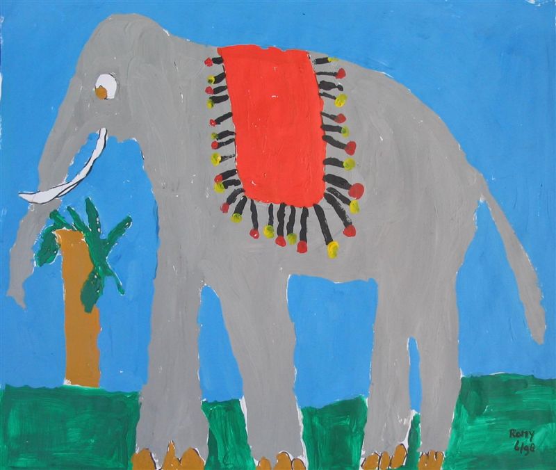 Er was een mooie kraam met zelfgemaakte schilderingen. We kochten deze mooie olifant.