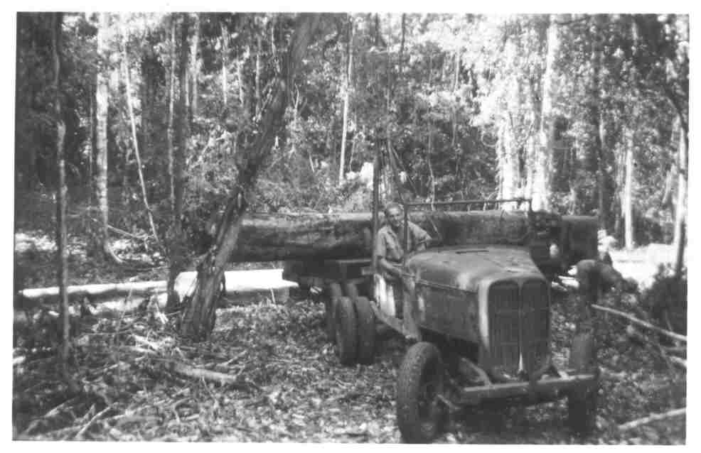 Toon achter het stuur van de takelwagen. Hierop kun je zien wat een ravage in het bos ontstaat bij het omvallen van de bomen. terug volgende index