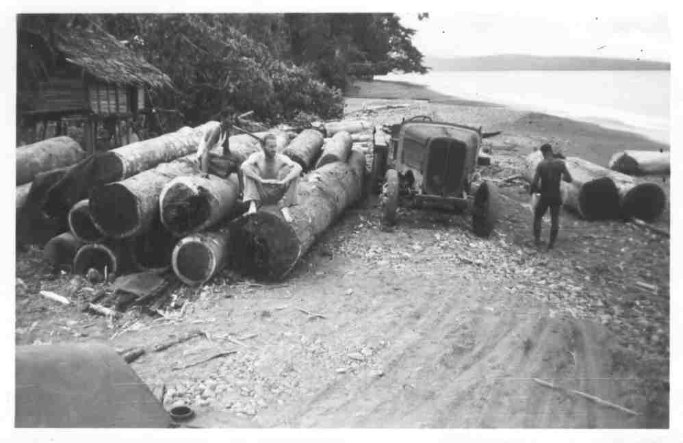 Verzamelplaats van ijzerhout, bestemd voor de Amsterdamse Ballast Maatschappij, die zelf voor verder transport zouden zorgen. Toon met blote voeten en baard. terug volgende index