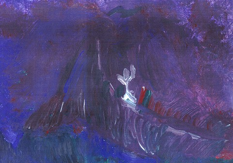 Frank die tegen de vulkaan oploopt.