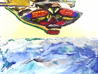 ruimteschip boven zee