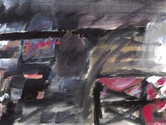 Links is een raam waar nog een weinig van de lucht te zien is.