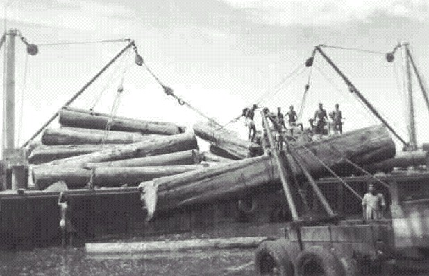 Hier een foto van de ponton op Maroeni terwijl er hout geladen wordt.