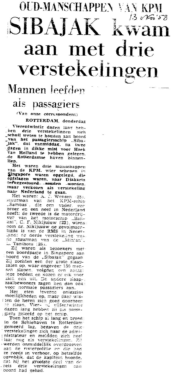 Rotterdam 13 november 1958 (het schip arriveerde op 11 november) stond in de krant: